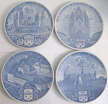 Aluminia D.D.P.A Jule/årsplatter fra 1907 til 1937 for Det Danske Petroleums Aktieselskab. Serien løb fra 1906 til 1939. De måler 16,8cm.