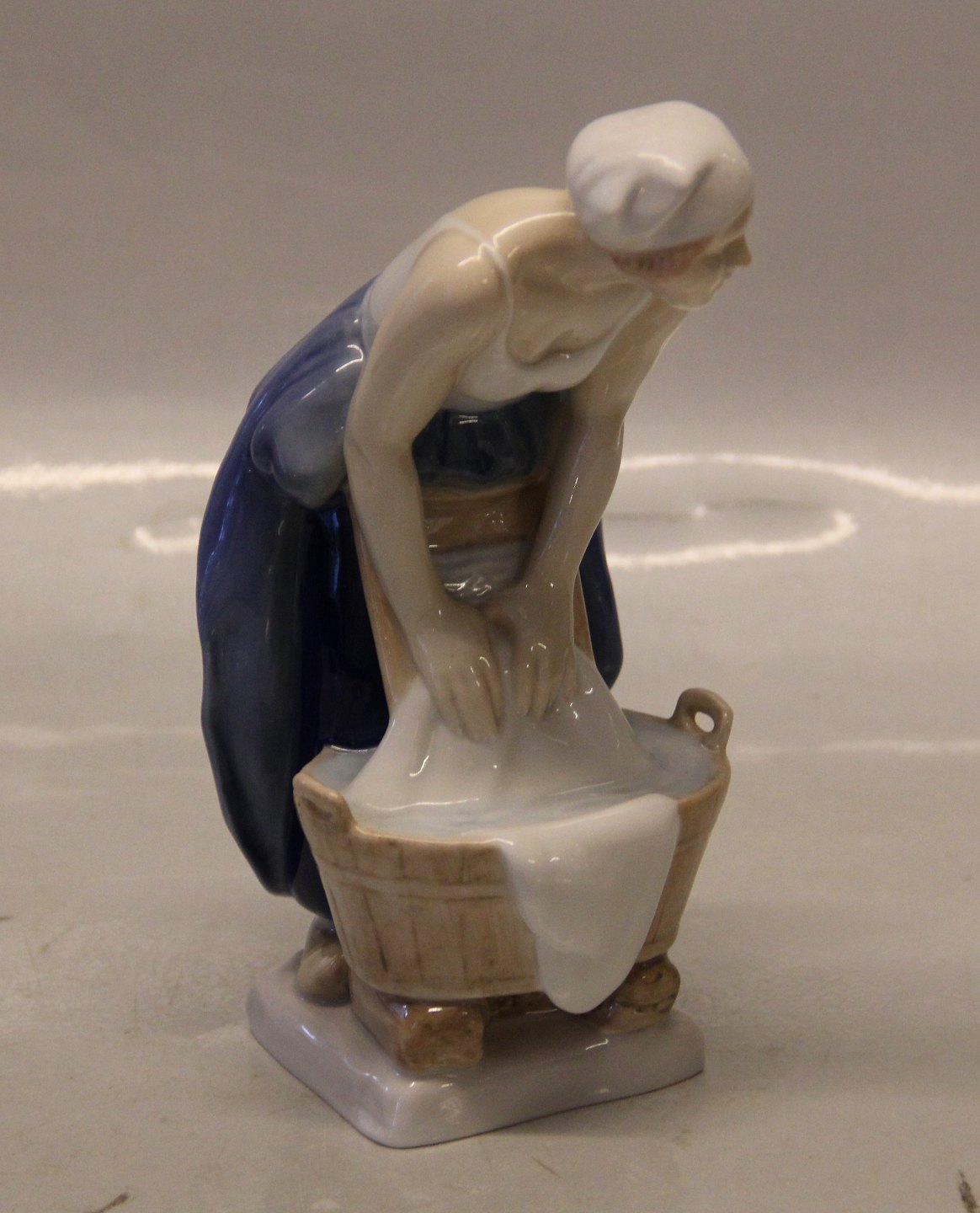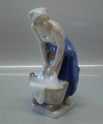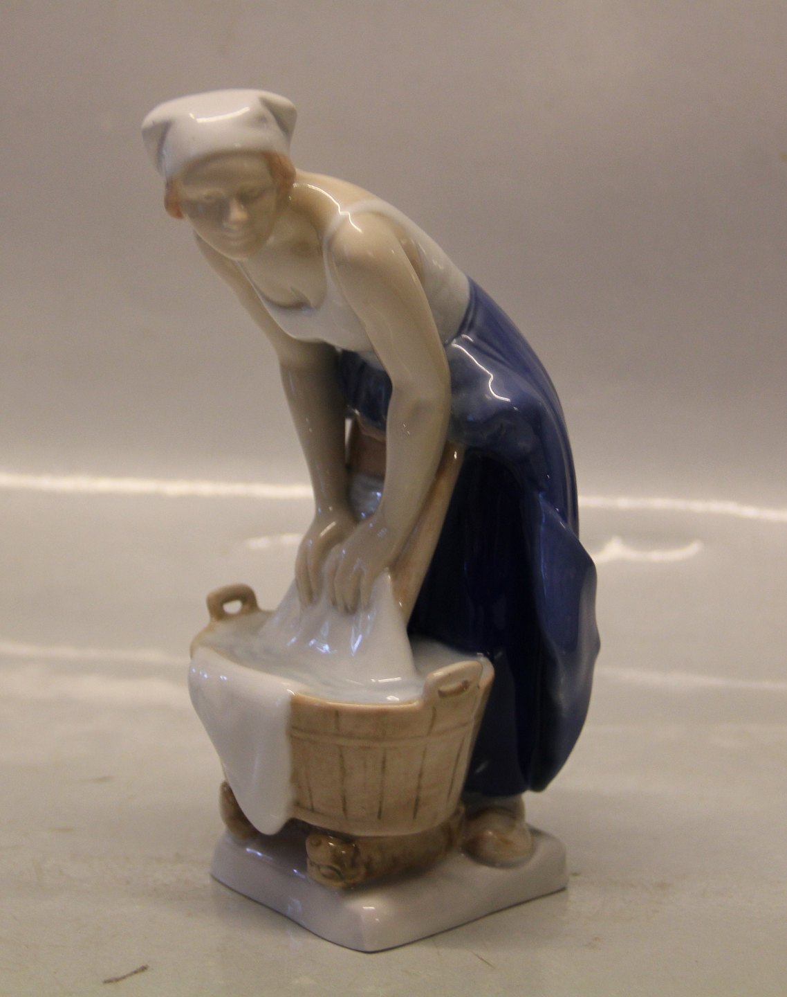 : Bing & Grøndahl B&G 2219 Bondepige vasker tøj 18 cm Axel Locher I fin og hel stand.