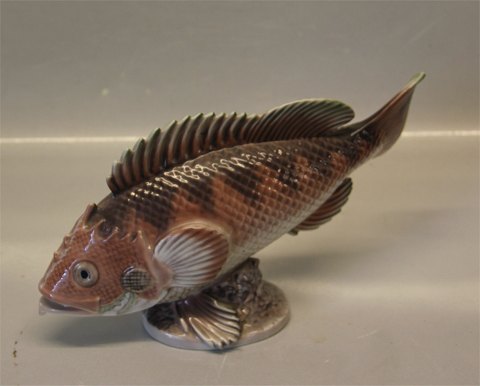 Beskrivelse: Dahl Jensen fisk 1386 Stor rødfisk (DJ) 23 cm. Mærket med kongelig krone og DJ Copenhagen i hel og fin stand.