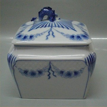 Beskrivelse: Bing & Grøndahl Empire Kiksespand 17 x 13 x 16 cm med søslange på låg I fin og hel stand. Blåmalet Anemoneranke på hvidt porcelæn - skabt for at konkurrerer med Royal Copenhagens musselmalede stel