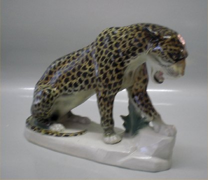 Beskrivelse: Leopard på fod 18 x 24 cm mærket Krone S SCHWARZBURGER WERKSTATTEN fra Tyskland