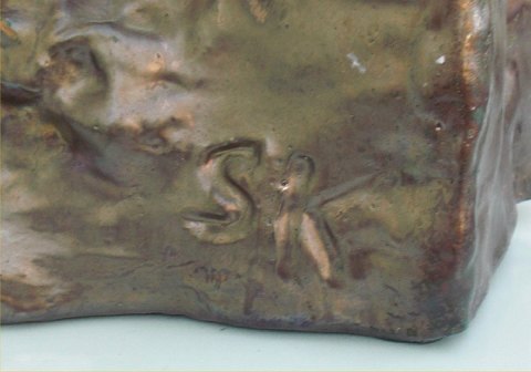 Kæmpe Bjørnegruppe rød kobberlustre glasur ca 40 x 40 cm Signeret SK