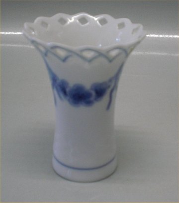 Beskrivelse: Bing & Grøndahl Empire 171 Violvase gennembrudt kant 8 cm (673) I fin og hel stand. Blåmalet Anemoneranke på hvidt porcelæn - skabt for at konkurrerer med Royal Copenhagens musselmalede stel
