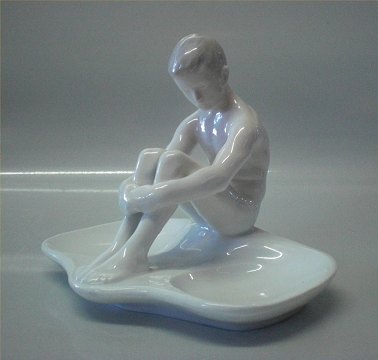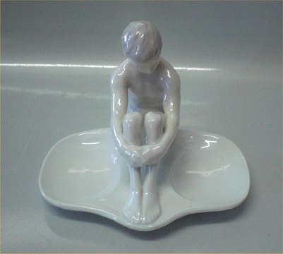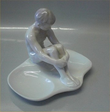 B&G figur 1660 Art Nouveau nøgen dreng på skål 15 x 17 x 12,5 cm