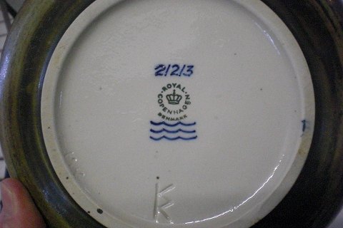 Beskrivelse: Royal Copenhagen stentøj 21213 Kgl. Skål med elefant 19 cm , Knud Kyhn, april 1954 I fin og hel stand