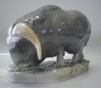 Beskrivelse: Kgl. 530 Kgl. Muskos Okse Erik Nielsen 1903 18 x 29 cm fra Royal Copenhagen I hel og fin stand