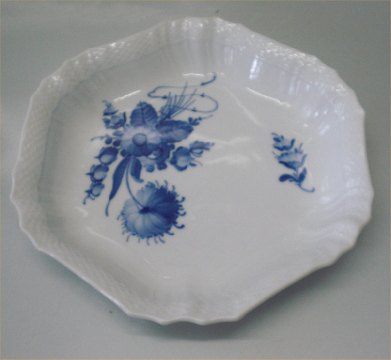 Beskrivelse: Kongelig Dansk Porcelæn Blå Blomst Svejfet 1527-10 Kagefad, sekskantet 23 cm I fin og hel stand
