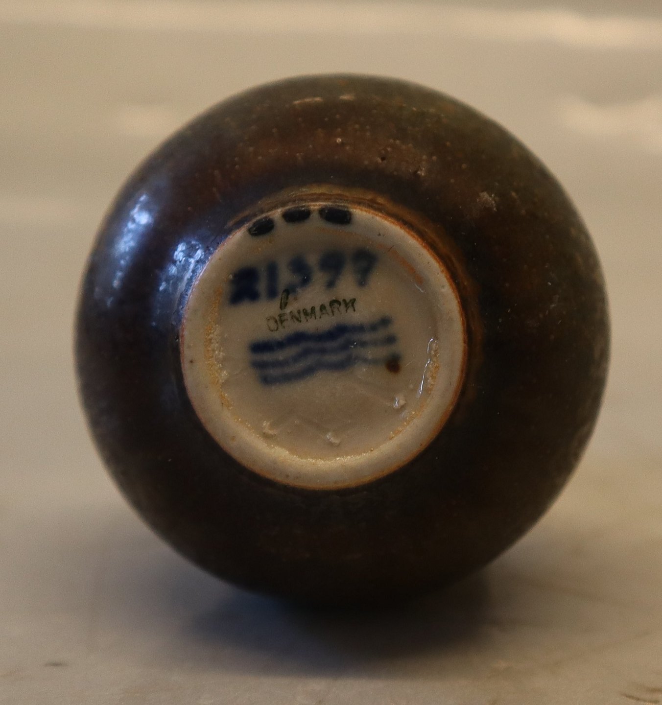 Beskrivelse: 21397 Kgl. Vase Kalebas form 9.5 cm Nils Thorsson August 1956 Royal Copenhagen stentøj I fin og hel stand