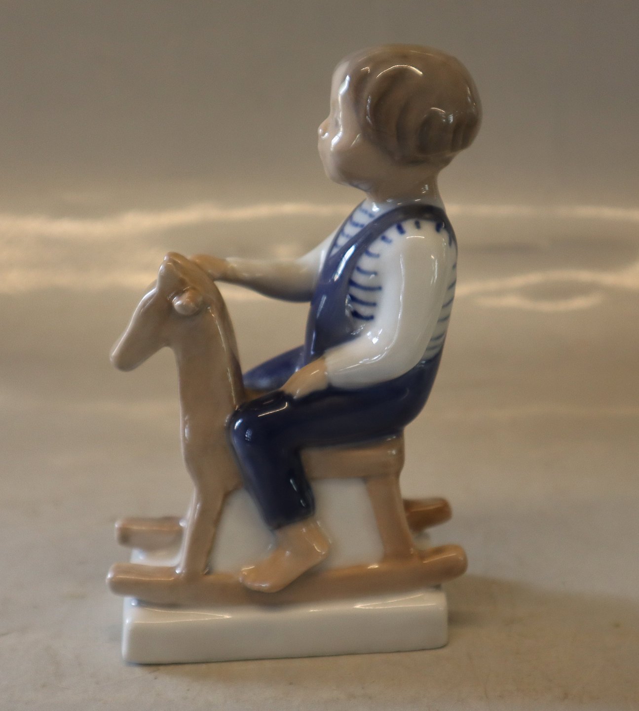 Beskrivelse: 5196 Kgl. Dreng med gyngehest 13 cm Hanne Varming